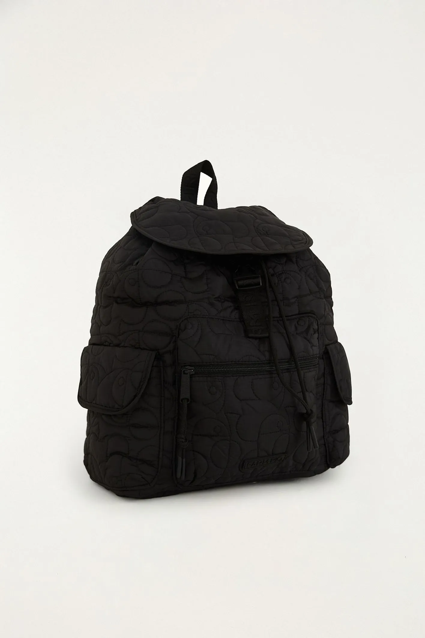 Bolsa pipoca puffer preta, uma mochila feita em nylon, é resistente e traz aba frontal sobreposta, alças acolchoadas e ajustáveis, bolso frontal, fechamento por cordão e compartimento interno.